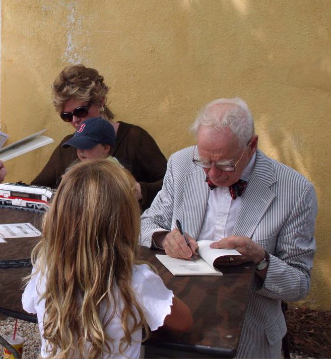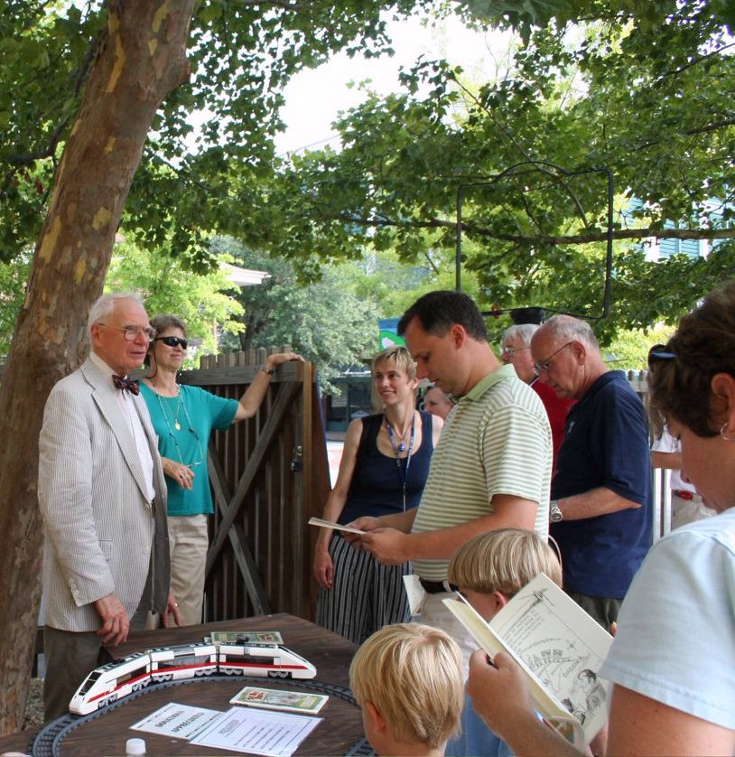 The Professor draws a big crowd. | A future engineer explains model trains to the crowd! | G. Walton Williams signs his book. |