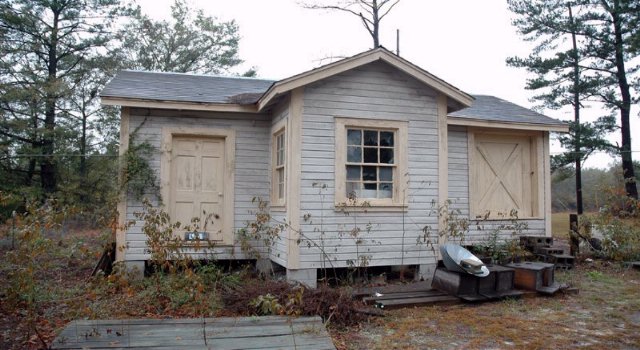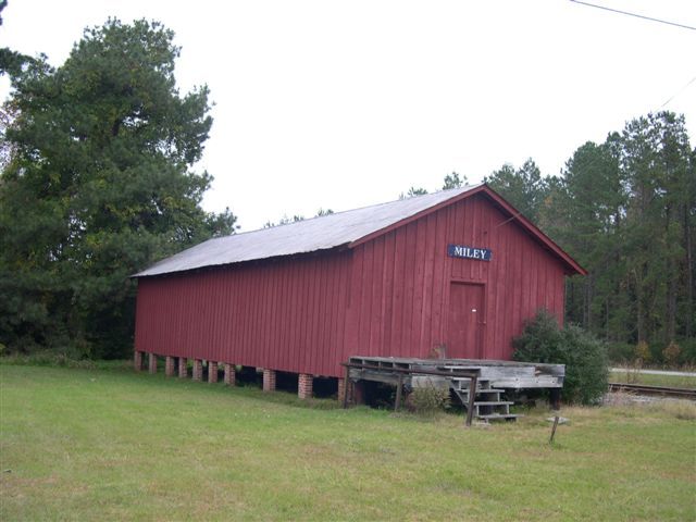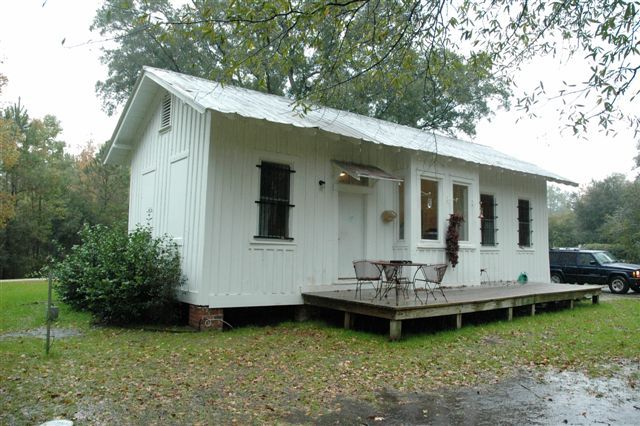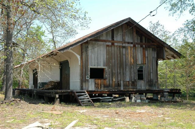 ST GEORGE, SC Ann Helms reports that this old building that was moved to Walters Pond on Second Texas Road may have been the original depot but locals think it may have been torn down. Additional information will be reported as it is available.(Courtesy of Ann L. Helms 2009)