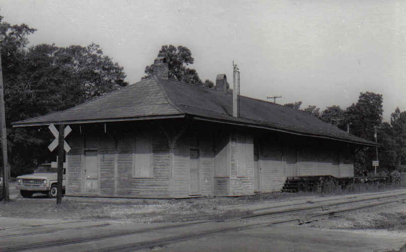 Located at the crossing of the Southern Rwy’s “SA” Line between Branchville and Augusta, and its “C” Line from Columbia to Hardeeville (thence Savannah and Jacksonville, via the trackage rights over the ACL), this depot has been donated to the town, moved and restored. (original source unknown, courtesy of Mike Young 2009)