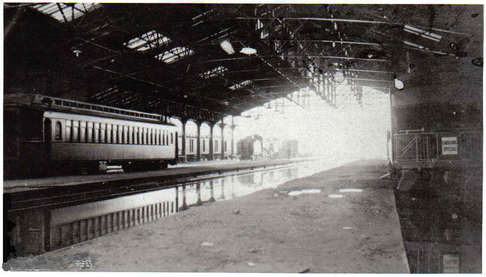 Built in 1907, situated at the corner of Columbus and East Bay Streets, serving Atlantic Coast Line, Seaboard Air Line and Southern Railways, Union Station caught fire at 11:35 a.m. on January 11, 1947 and was completely destroyed.The color photo shows the diorama of the Union Station built in 2009 by the CMR Company for the town of Aiken.