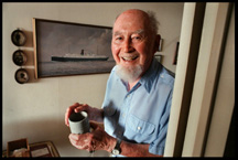 The photograph above shows Captain John LeCato standing in front of his desk, among his collection of books, paintings and train memorabilia that tell the story of his colorful life. He and his wife, Maurine, met aboard the passenger steamer, Berkshire, in 1939, and they have shared a remarkable life, full of love, fun and adventure. They chose Charleston as their home prior to his retirement from the command of the U. S. Naval Ship, Victoria, in June 1973.